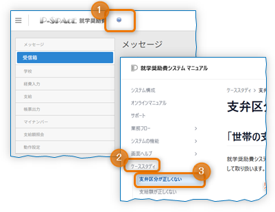※上記オンラインヘルプと同じ内容を、就学奨励費システムのヘルプボタンから閲覧していただけます。